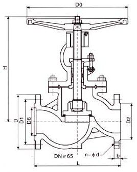 ![]() 一般中低壓的截止閥是低進高出,截斷的時候填料不受力,減少泄漏的幾率,可以延長使用壽命. 一般>DNA100的截止閥可以采用高進 低出; 大口徑和高壓狀態下采用低進高出的話關閉閥門比較困難,二是因為如果再高壓大口徑狀態下采用低進高出,閥桿長期受到水壓力容易變形彎曲,影響閥門的安全性和密封性;三是選用高進低處的話對閥桿直徑就可以小點,對于廠家和使用者來說也會節約點成本。 ![]() 截止閥外形及結構尺寸 1.6MPa