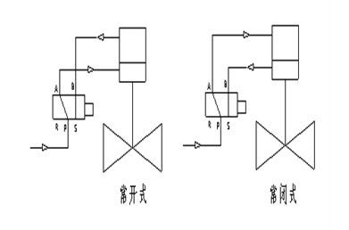 氣動程控切斷閥--作用原理及結構說明 當控制器按事先編好的程序對某個氣源換向閥輸出一個信號,該換向閥動作,使帶壓儀表氣源通過換向閥的切換進入氣動執行機構的氣缸上腔或下腔,推動活塞運動使閥們開啟或關閉。閥門的操作連接方式(如圖所示)。