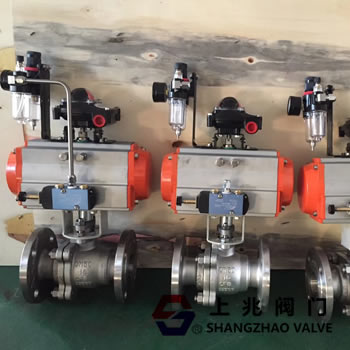 氣動球閥是球閥配上氣動執行器,氣動執行器的執行速度相對較快,快的開關速度0.05秒/次,所以通常也叫氣動快速切斷球閥。通常配置各種附件,比如電磁閥、氣源處理三聯件、限位開關、定位器、控制箱等,以實現就地控制和遠距離集中控制,在控制室里就可以控制閥門的開關,不需要跑到現場或者高空和危險地帶來手動控制,在很大程度上節約了人力資源以及時間和安全性。 氣動不銹鋼球閥是一種常用的控制元件,是由旋塞閥演變而來具有相同的旋轉90度動作,不同的是旋塞體是球體,有圓形通孔或通道通過其軸線。在管路中主要用來做切斷速度快、分配和改變介質的流動方向。它的工作原理是靠旋轉閥芯來使閥門暢通或閉塞。球閥開關輕便,體積小,可以做成很大口徑,密封可靠,結構簡單,維修方便,密封面與球面常在閉合狀態,不易被介質沖蝕,在各行業得到廣泛的應用。